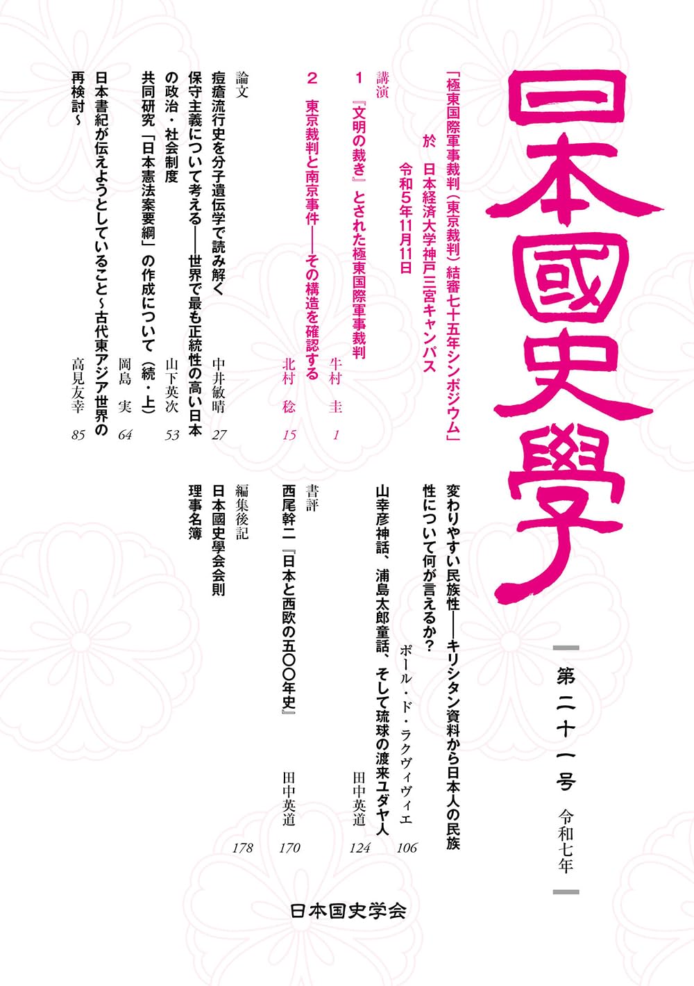 日本国史学 第二十一号 (発行日:令和七年)